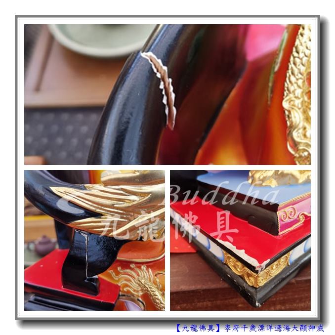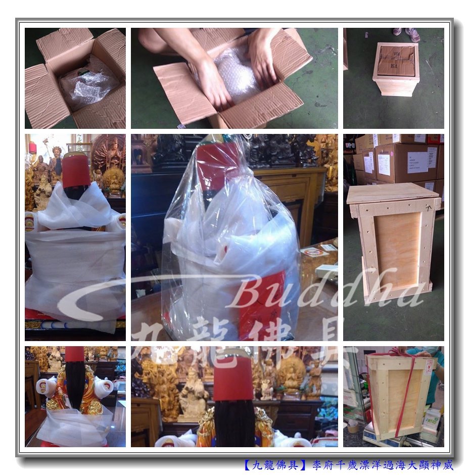 接下來我們認真包裝,讓李府千歲前往馬來西亞飛去。雖然我們做了木箱也用氣泡袋保護。這運送過程中卻還是遭遇到我們最不想面對到的狀況。