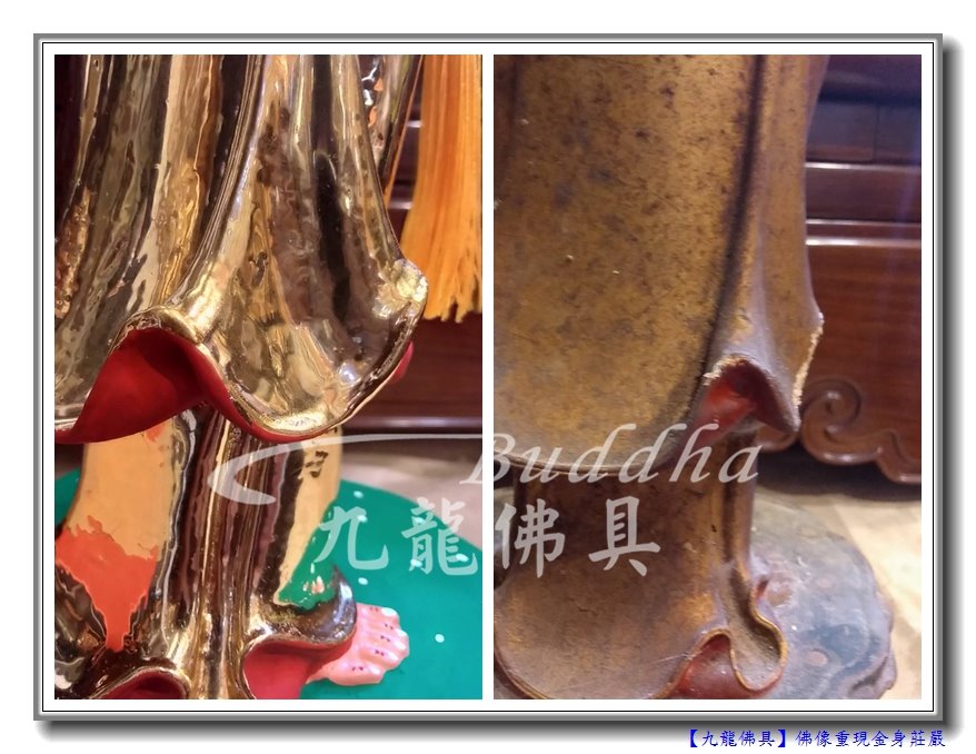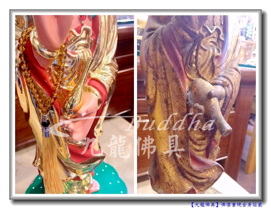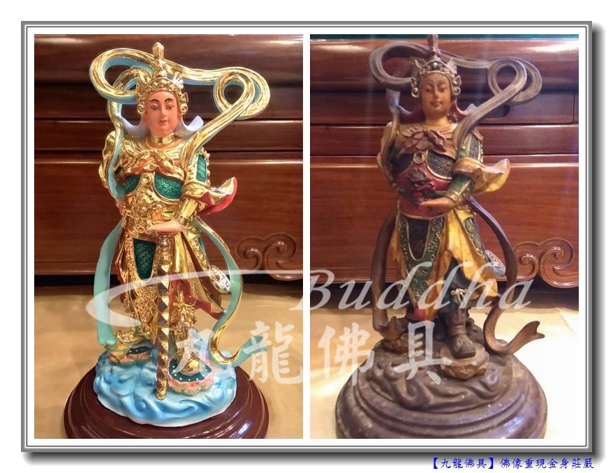 今天要跟大家分享也是很吸睛的佛像重現莊嚴金身,整型前後的大對照,讓小編一一來分享。這次有請站姿的觀世音菩薩,和左右大護法伽藍韋馱菩薩一起來變身。