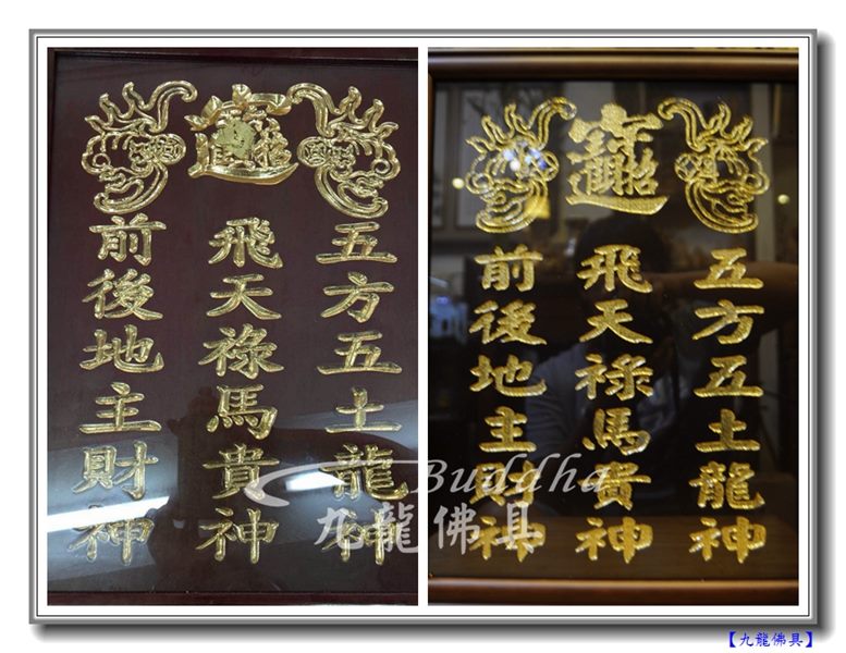 各地風俗民情不同,供奉的仙佛儀式五花八門,要探究還真是無底學問。託香港有緣的朋友福氣,讓九龍認識了另一種求財方式。香港的朋友請九龍複刻一塊板子,寫著「五方五土龍神,飛天祿馬貴神,前後地主財神」。