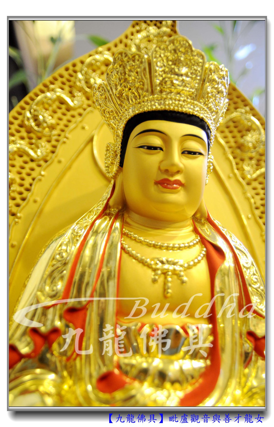 【普陀山毗盧觀音與善才龍女】客制化普陀山毗盧觀音佛像,全金身閃閃發亮莊嚴雄偉~感恩張師兄訂制