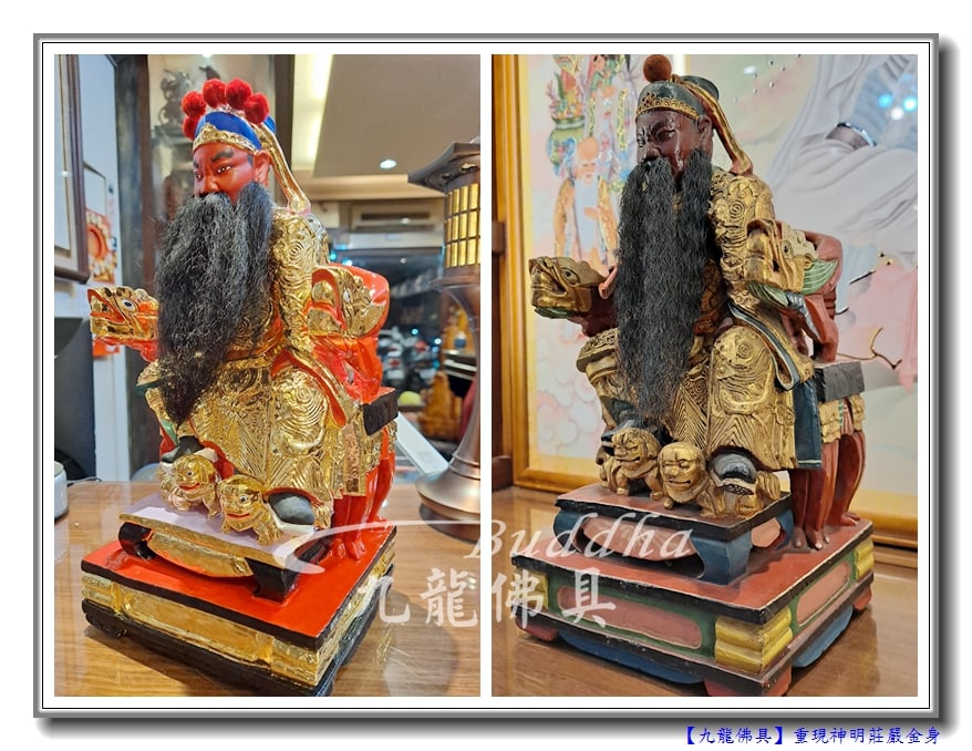 【板橋莊嚴神明佛像整理修復】原木尺六關聖帝君安金@九龍佛具