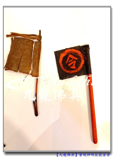 另外也帶了一尊持令旗的小將軍,讓龍師傅重新做一支小小令旗。布製的小令旗總長六公分,完全手工縫製,還真是苦了龍師傅的老花眼了(*’ー’*)