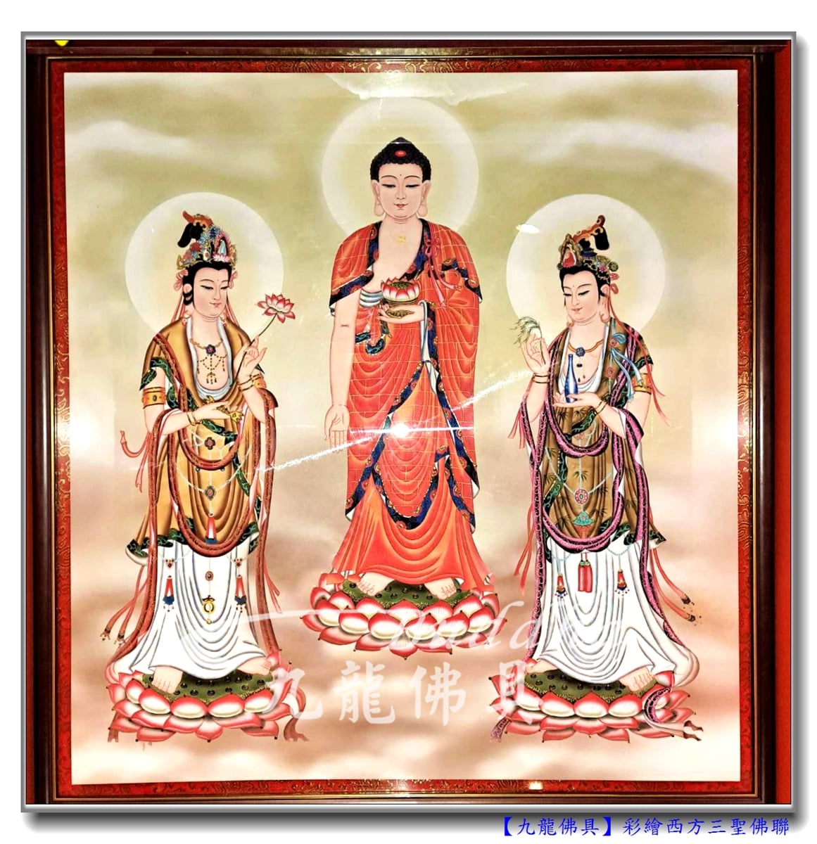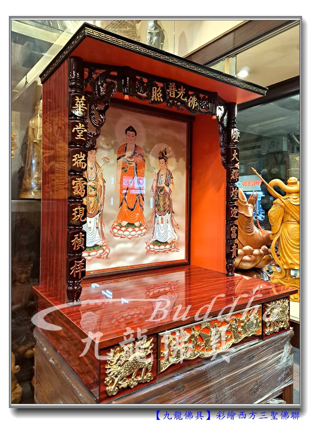 【傳統壁掛式佛櫥】西方三聖全彩訂製佛聯,精緻手繪質感提升佛堂莊嚴氣息