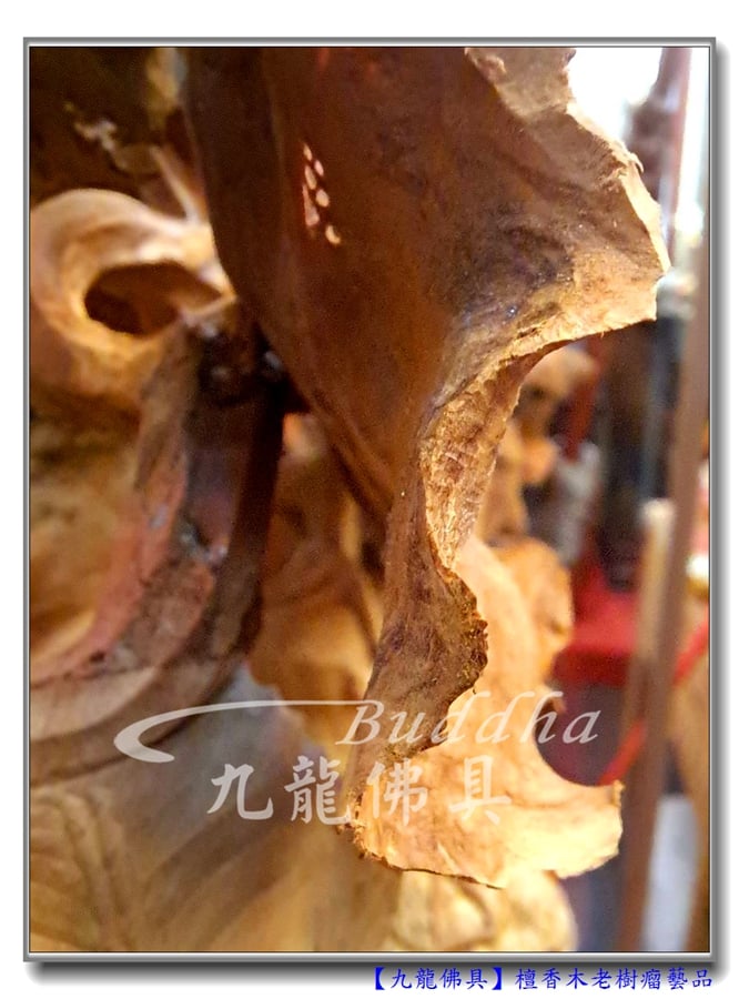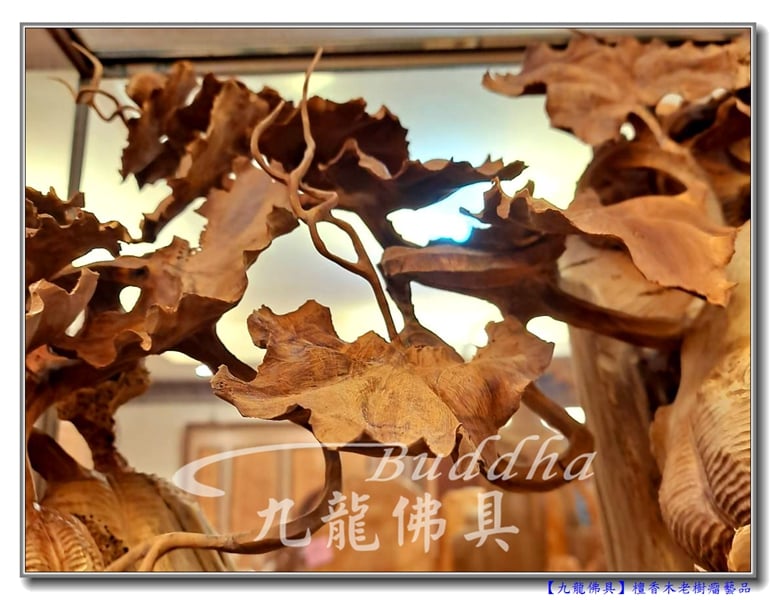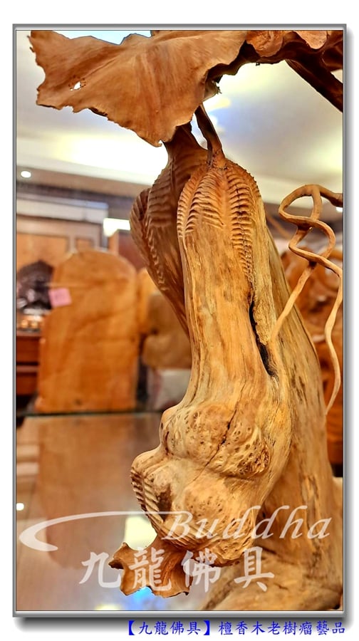 這件檀香木根藝作品,我們將其置於玻璃框內,每每開啟玻璃框,撲鼻的芬芳香流不斷。