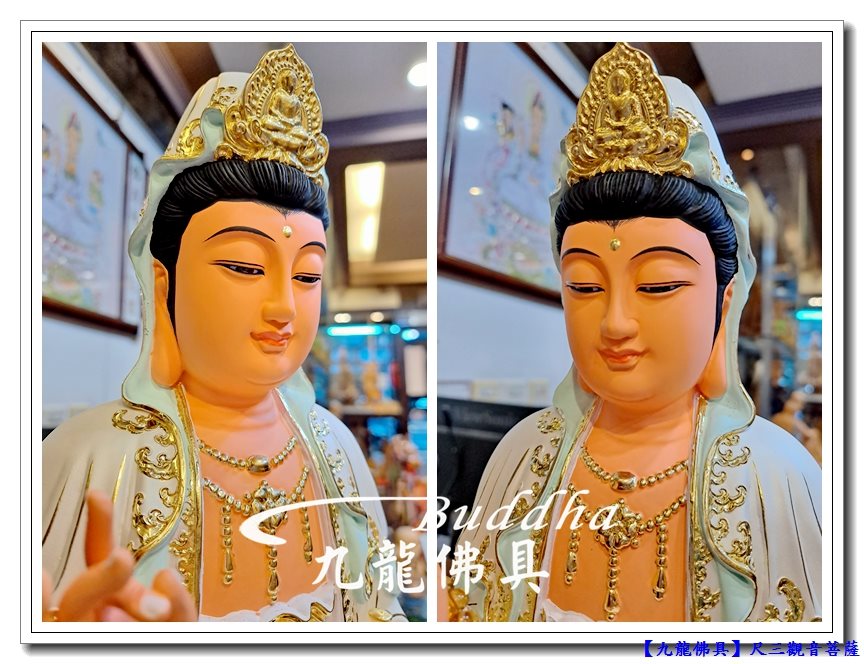 【尺三彩繪觀音菩薩】精緻彩繪白衣大士~柔和法相尺三木雕觀音菩薩@板橋九龍佛具