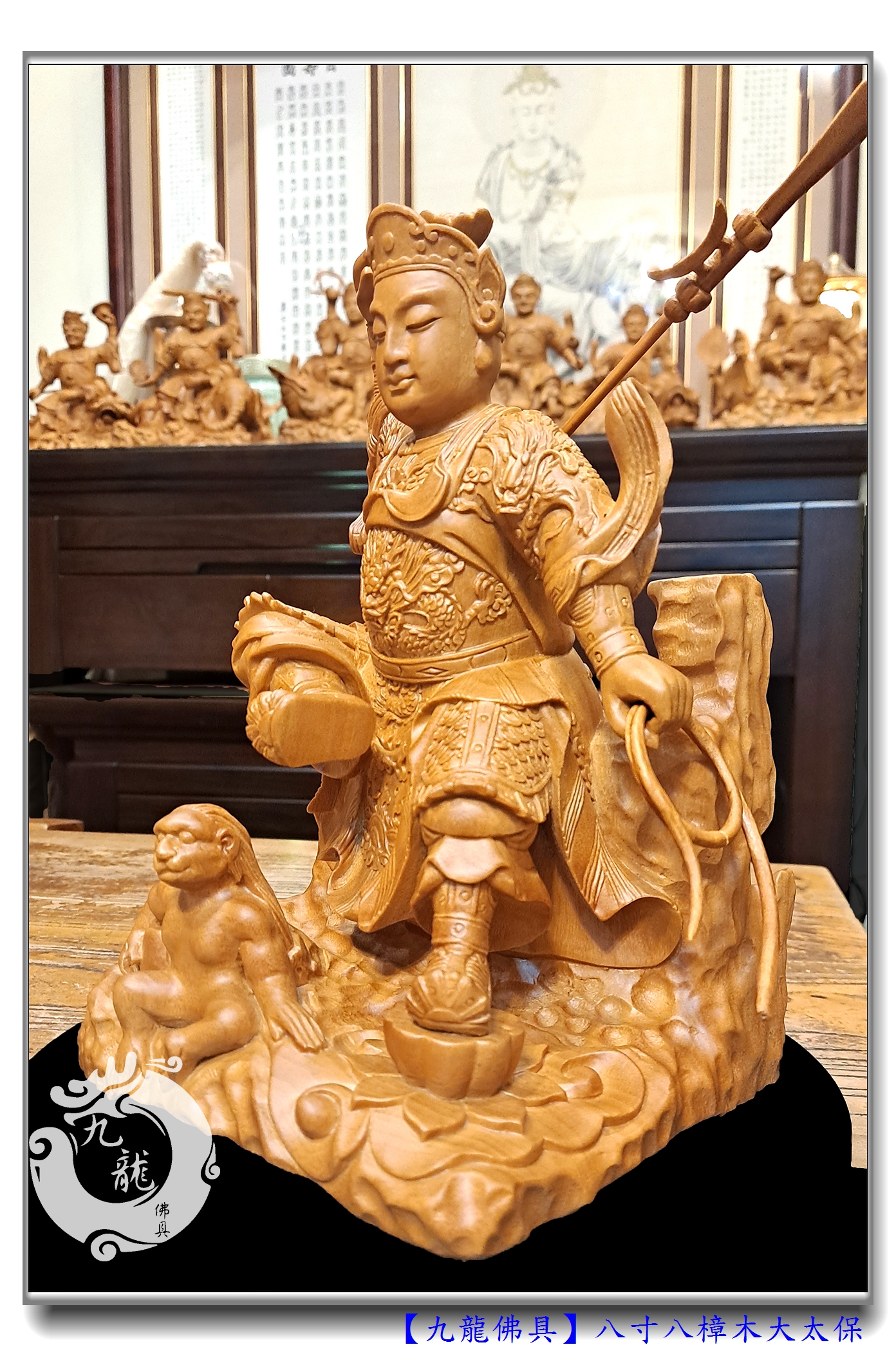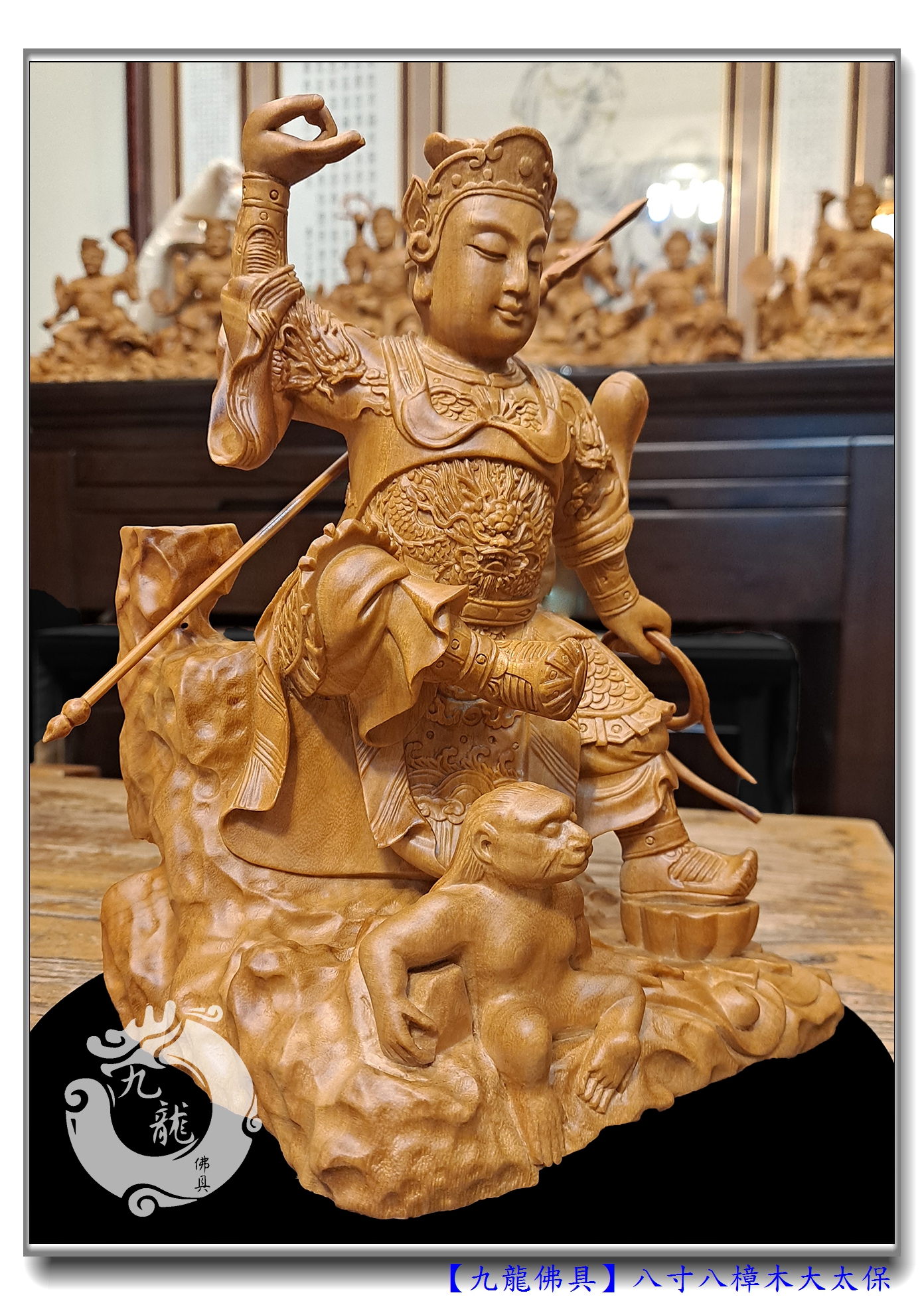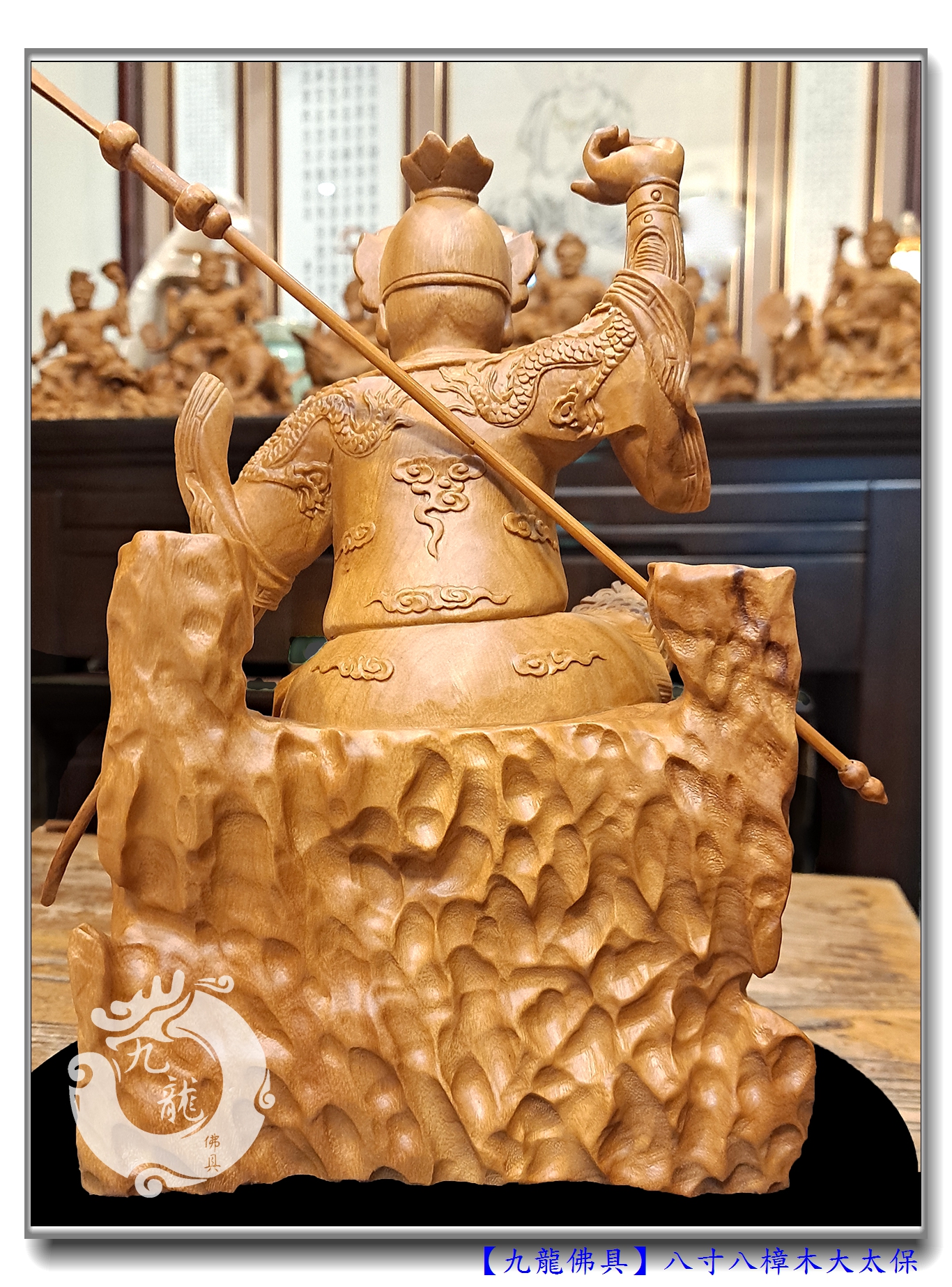 整體雕塑是八寸八高,龍師傅手藝高強,法器、姿態的細節都表達得精準
