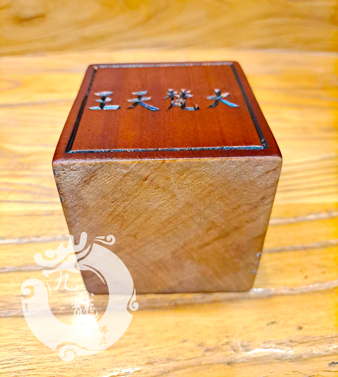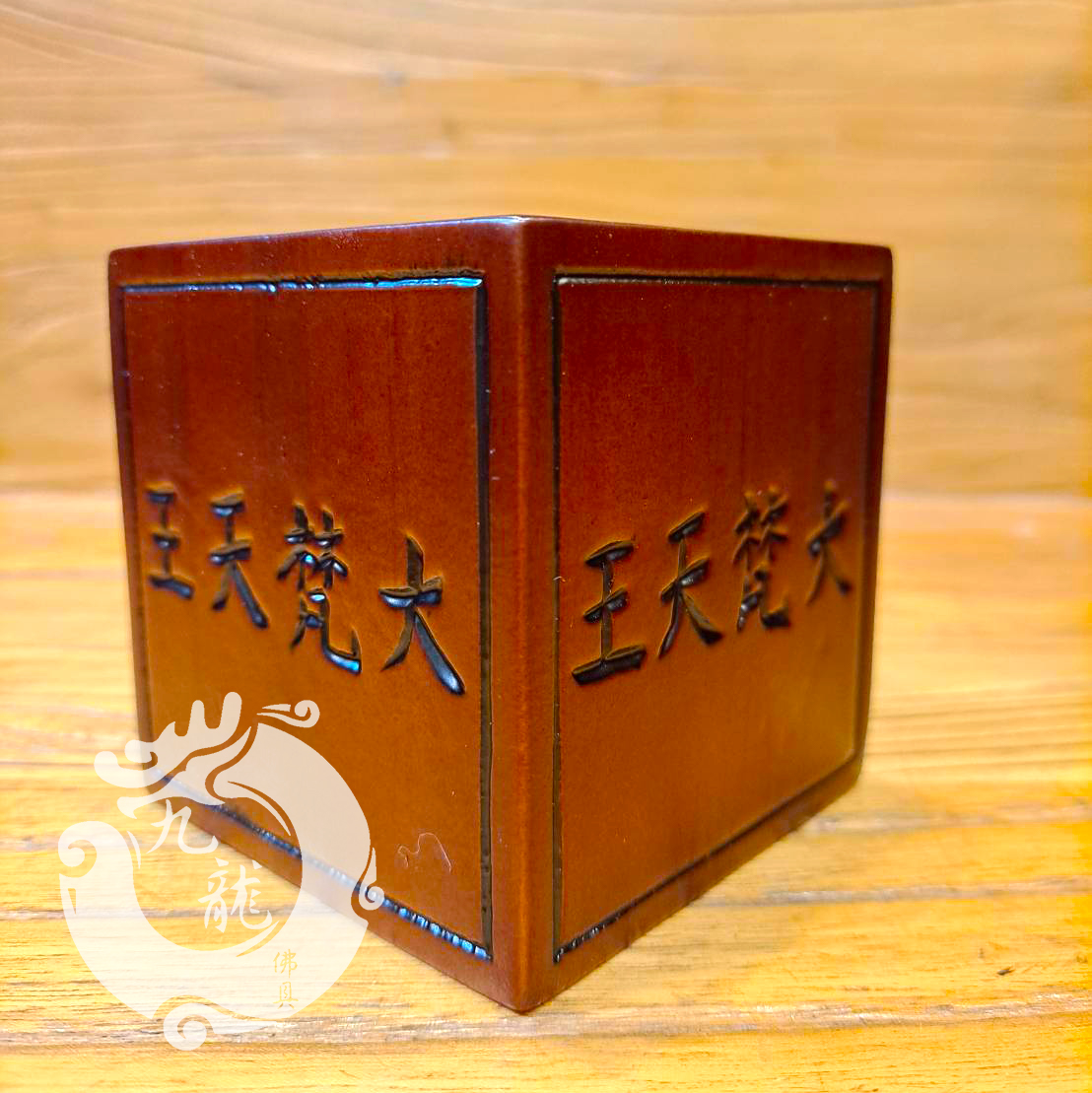 【客製化神明墊座】大梵天王增高座,感謝歐師兄與九龍結緣 by 九龍佛具 · 2022/09/23 各位九龍的朋友大家好 今天想分享一下點綴神明金身的小配角—神明用貼座 這次與九龍結緣的是高雄歐師兄 很用心的歐師兄幫家裡的神佛 訂做了一個實木的貼座 四面刻了大梵天王 刻字是師傅用手工一筆一劃刻出來的 不是雷射電刻的,所以字體的周邊痕跡是帶圓潤的刻痕 這樣工整的字體是用手工刻出來的 可見師傅的專注力要很夠才不會歪斜 這是正方體的實木貼座,很簡單 也很有質感 因為是小配件所以沒有太多華麗的彩繪 反而低調地襯托出神明的莊嚴 很謝謝歐師兄的信任 透過網路與我們聯絡 還給我們五星的好評 感謝神佛的牽引 也謝謝您的觀賞